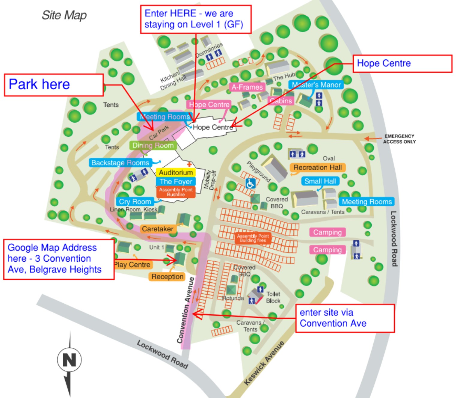 Meals and other gatherings will all be held at the new Heights Hope Centre, Belgrave Heights. For overnight accommodation: